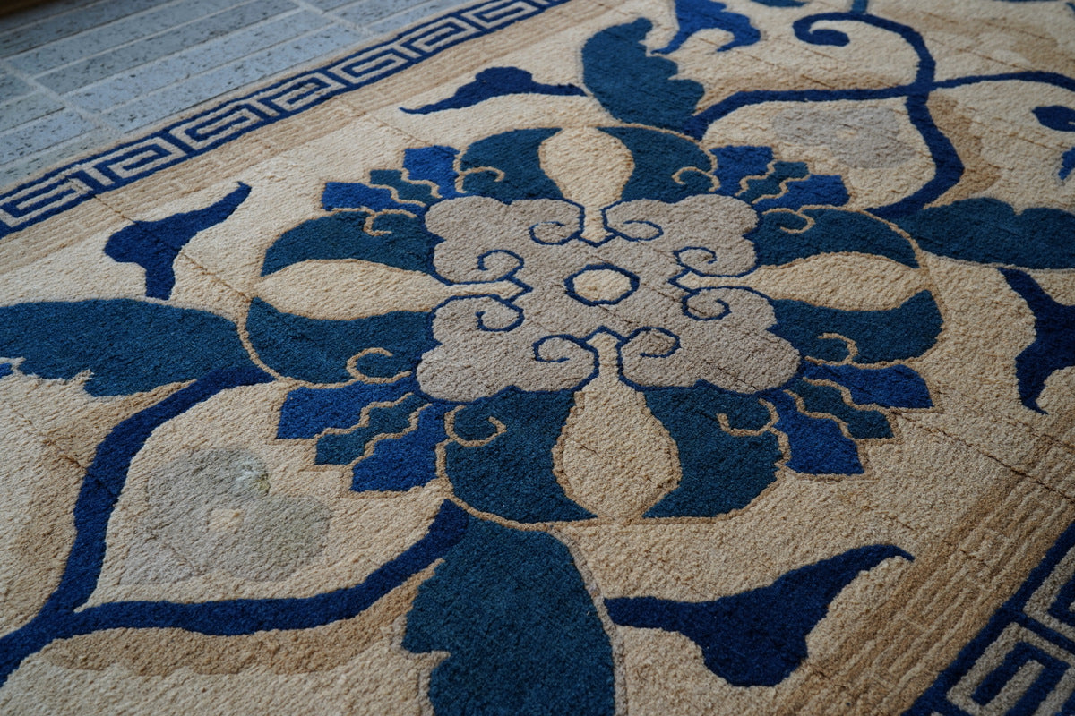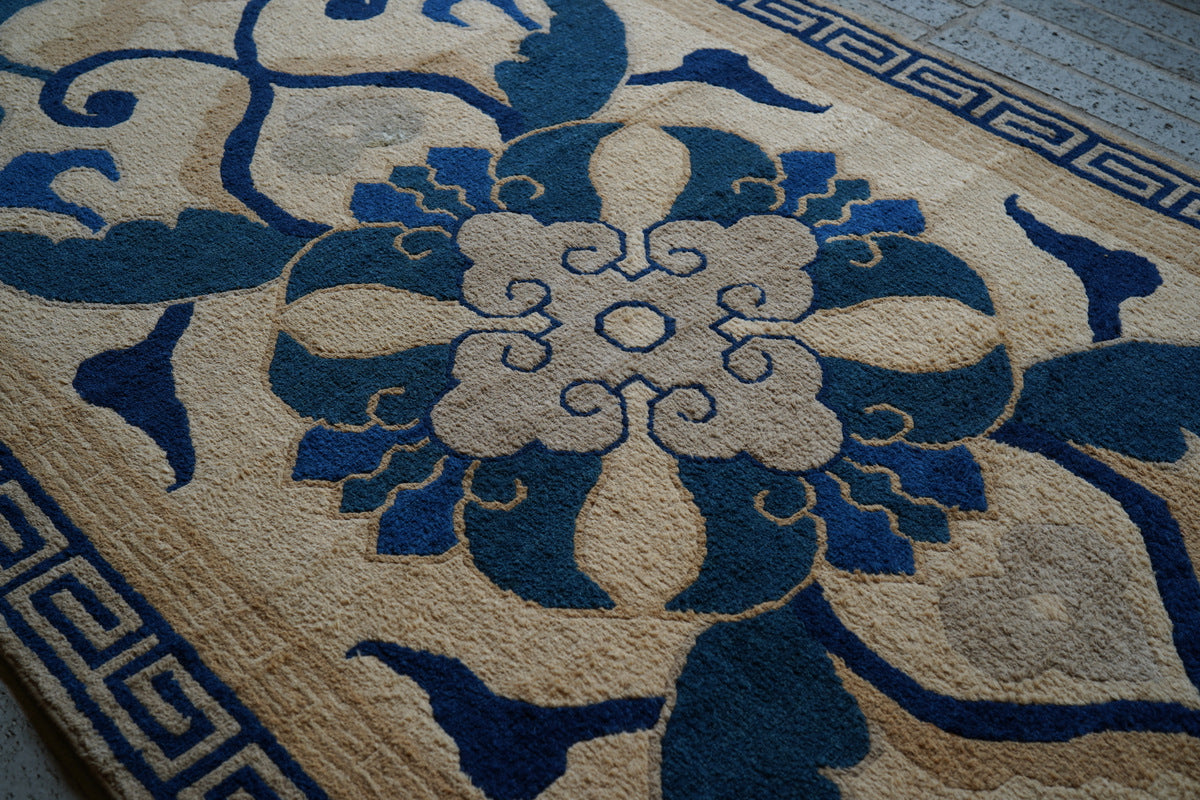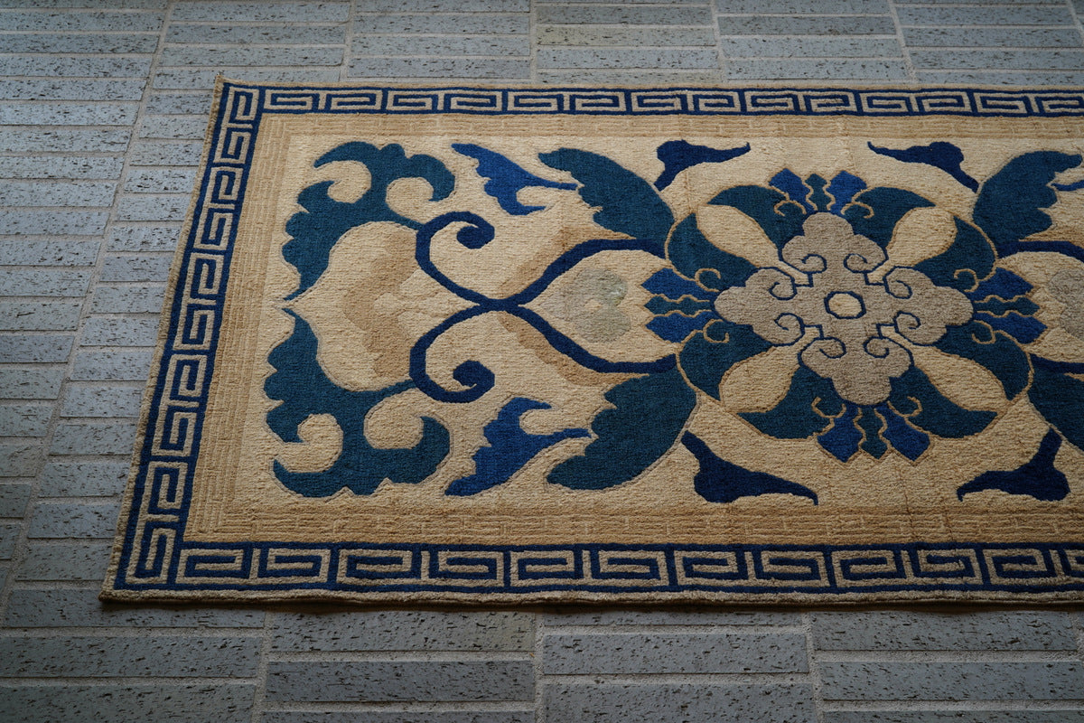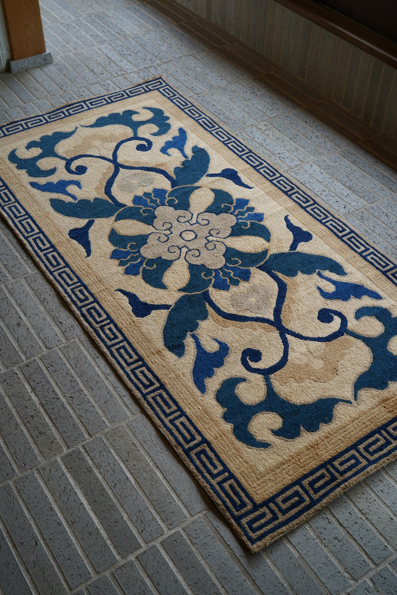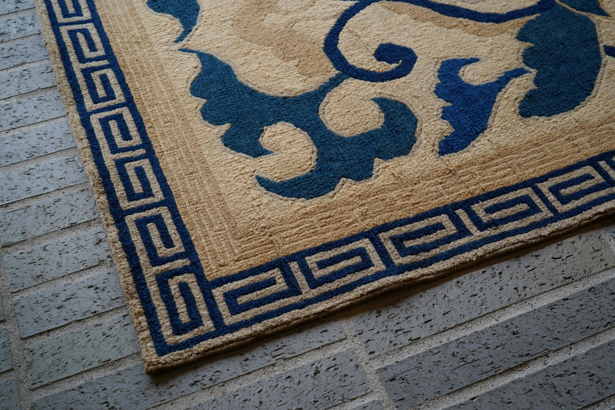 日本の緞通を代表する文様。蟹がハサミを振り上げたように見えることからこの名がついた。