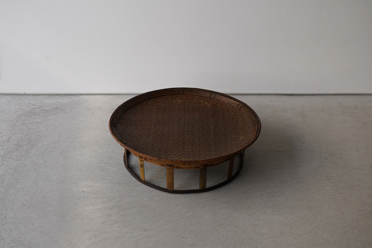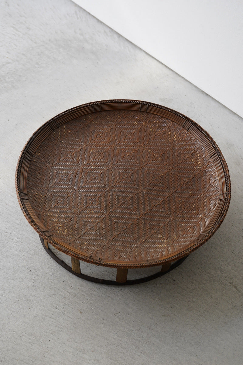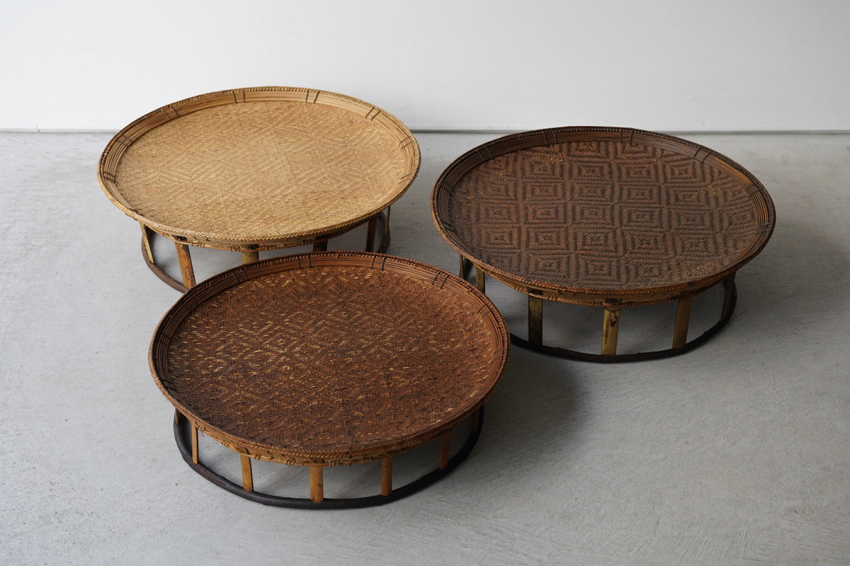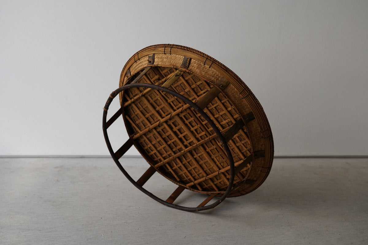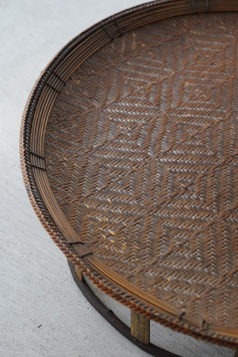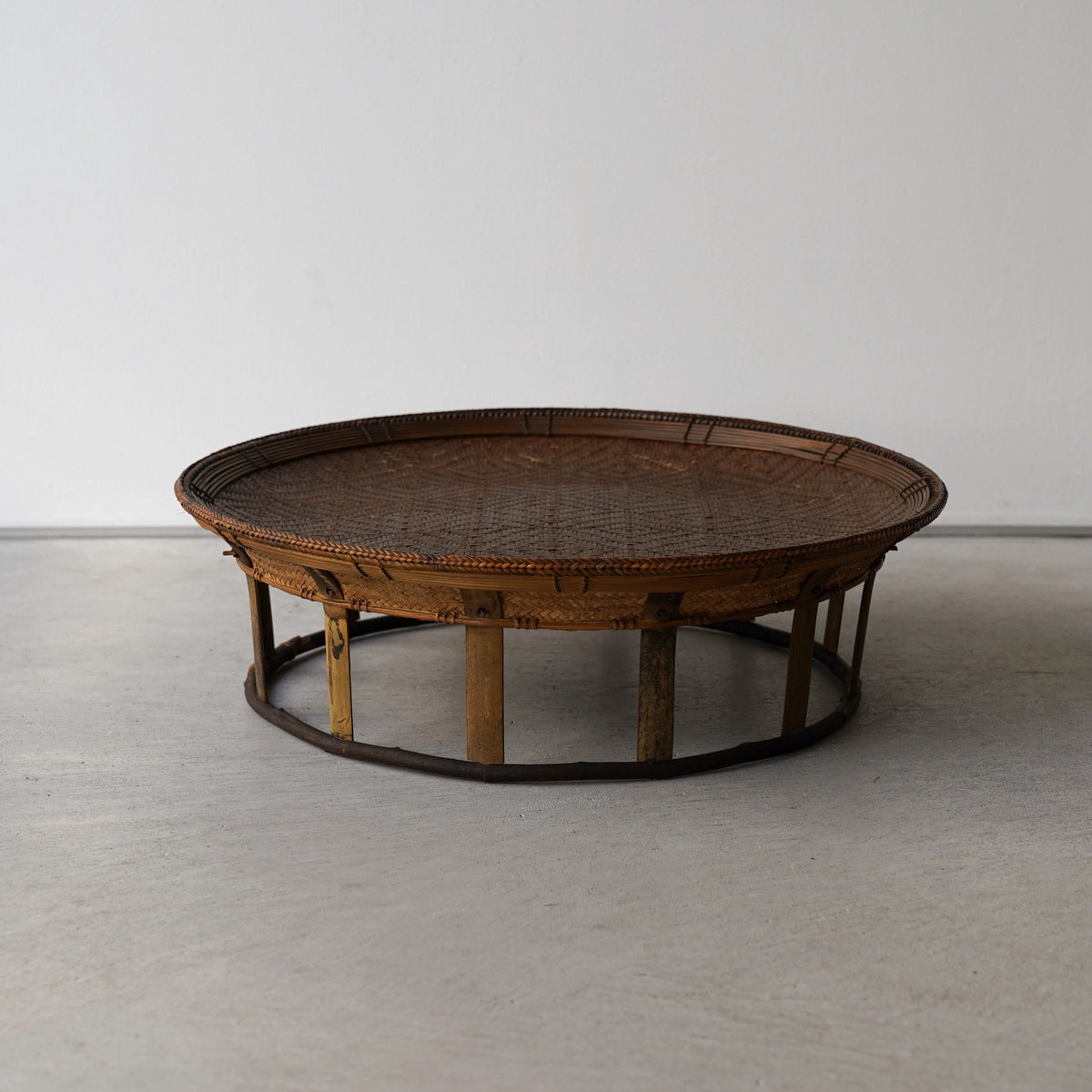 本品は、釜戸のある部屋で保管されていたため、竹に燻香(くんこう)や煤が自然に移っています。これはラオスの生活環境と製作背景に由来するものであり、防腐・防虫効果をもつ自然な仕上げとも言えます。ご使用上問題はございませんが、気になる場合は風通しの良い場所にしばらく置いていただくことで軽減されます。