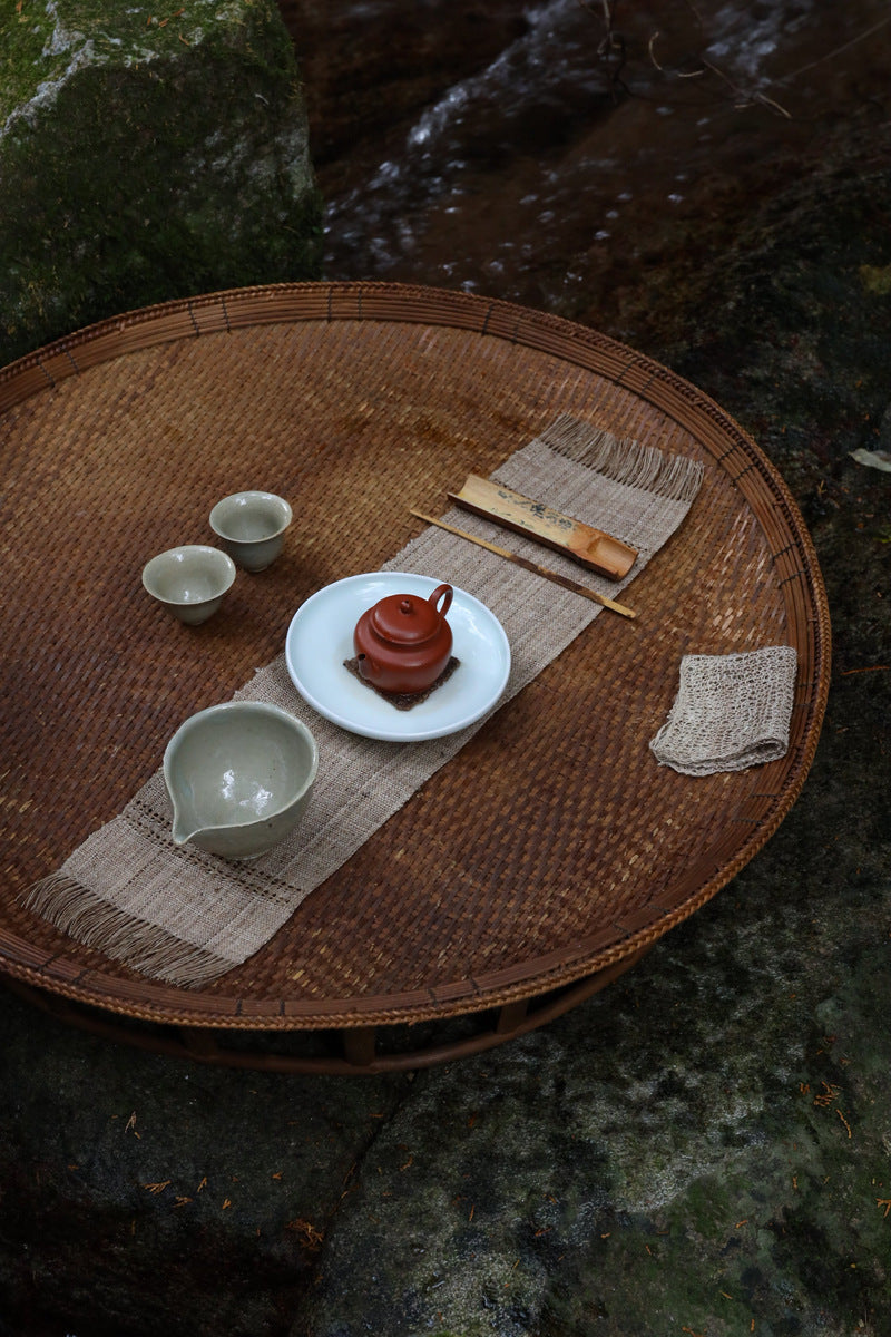 2種類の竹が使用され、節の少ない竹を使用することにより、天板の竹籤による滑らかな織り模様が特長。