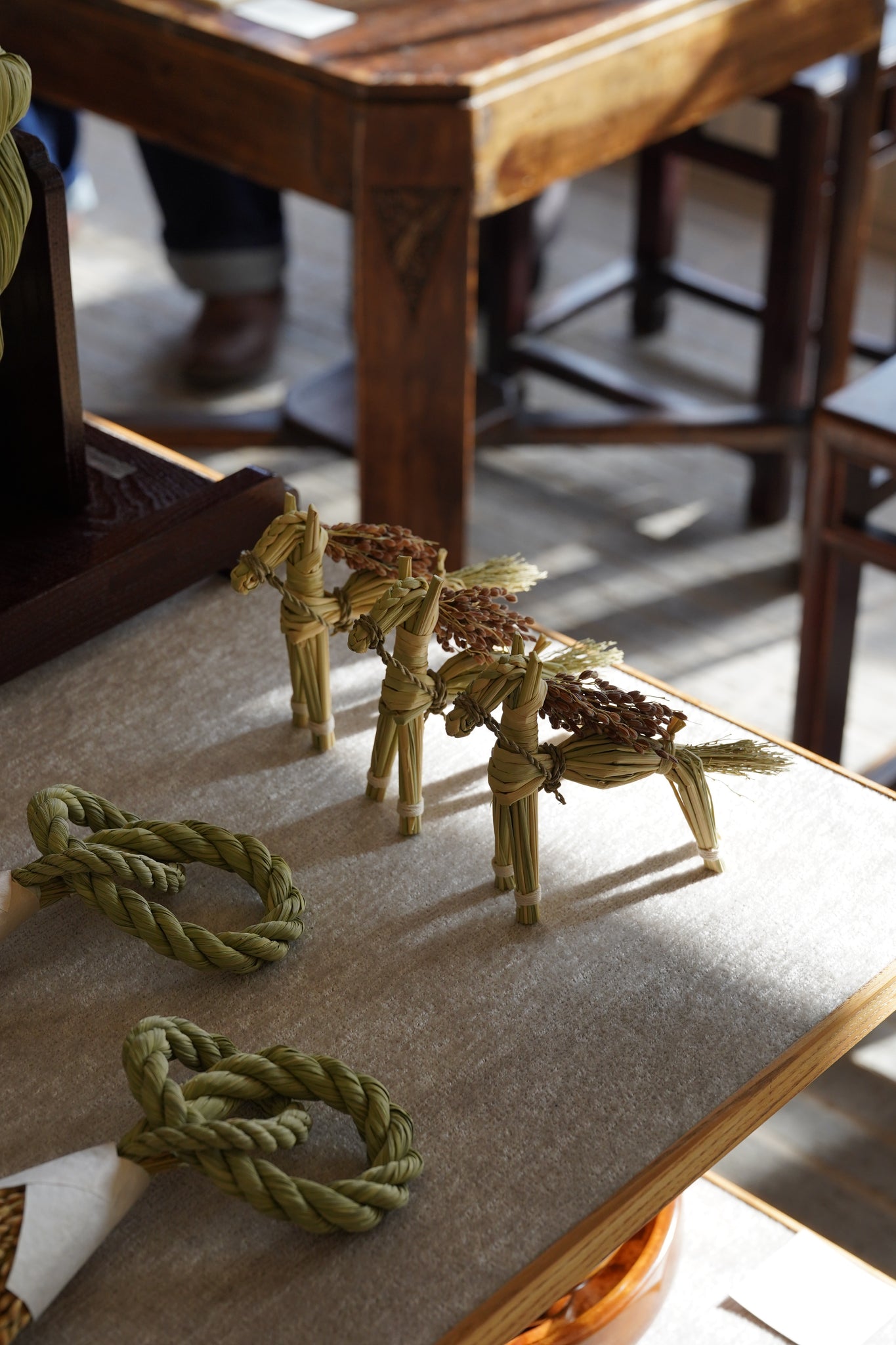 ※素材の特性上、当初見られる青みは少しずつ抜け、徐々に稲藁の色へと変化していきますので、ご了承ください。その色合いの変化をお楽しみください。